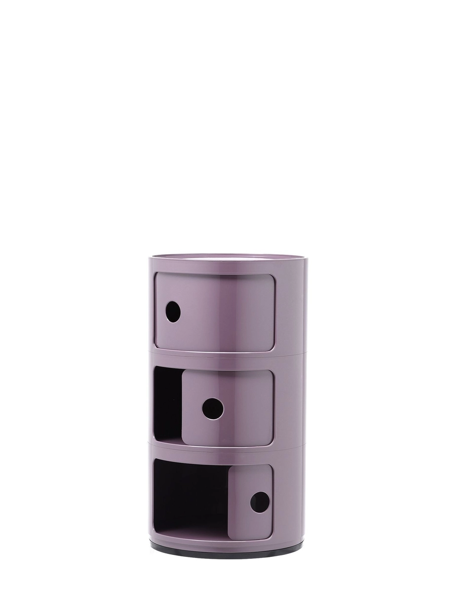 The modular elements were designed to meet different needs and to fit perfectly into every room in the home. Componibili first appeared in 1967 and have become a timeless furnishing classic. Today’s Componibili are 32 cm in diameter. Thanks to fixed compositions of two, three or four elements, these products are both functional and practical in all environments. This model comes in six glossy finishes and one matte silver finish.