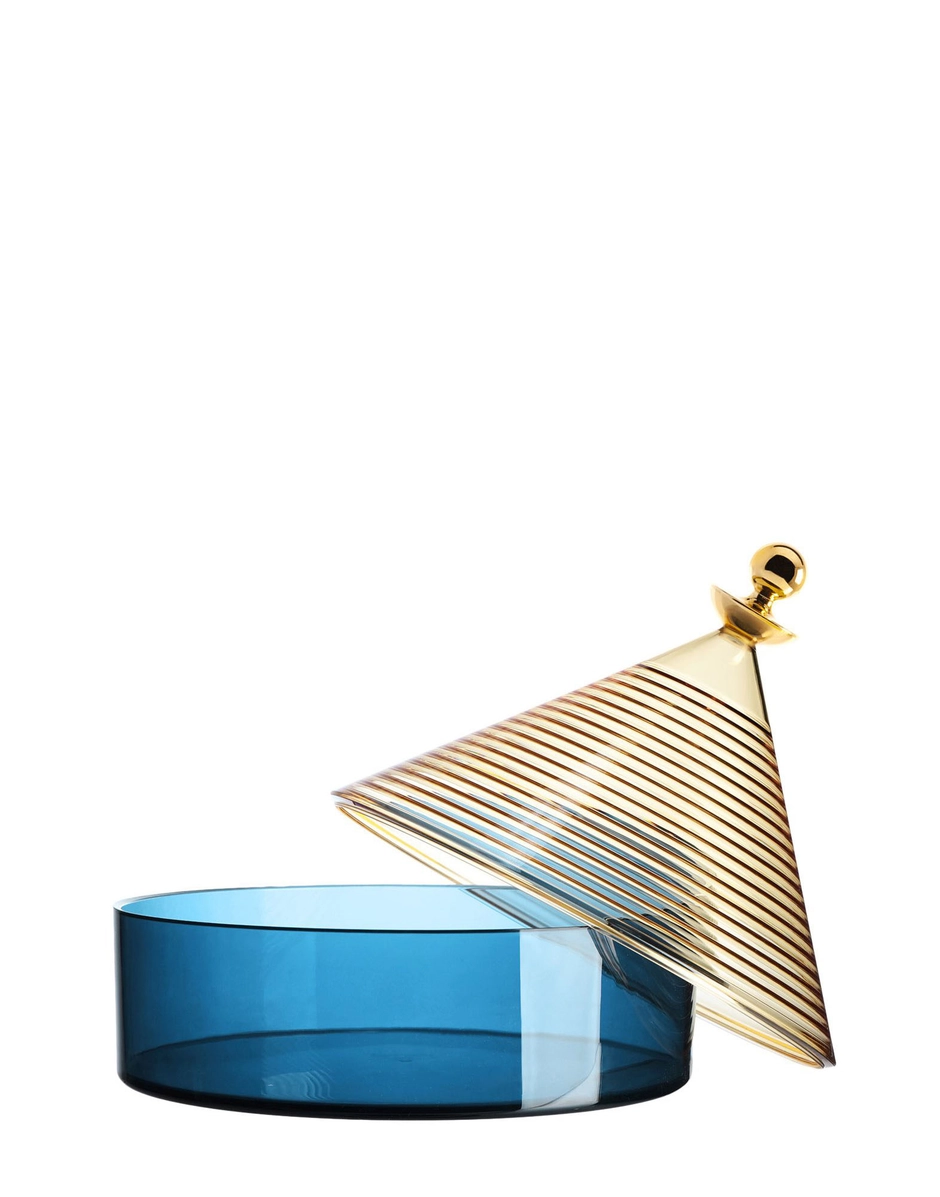 Trullo is a table container with conical lid, inspired by the architecture of the typical houses of Alberobello in Apulia. Fabio Novembre continues the creative path influenced by the architecture of his homeland.