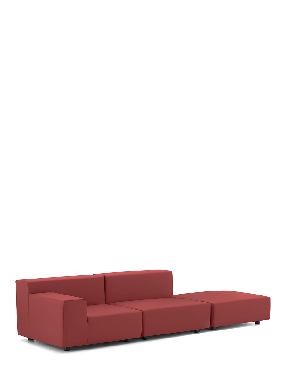 Plastic is the modular sofa with severe lines characterised by large cushions made of soft polyurethane upholstered in fabric. The Pop collection is completed by an armchair with the same features and by a pouf, which can be used individually or as part of an arrangement.