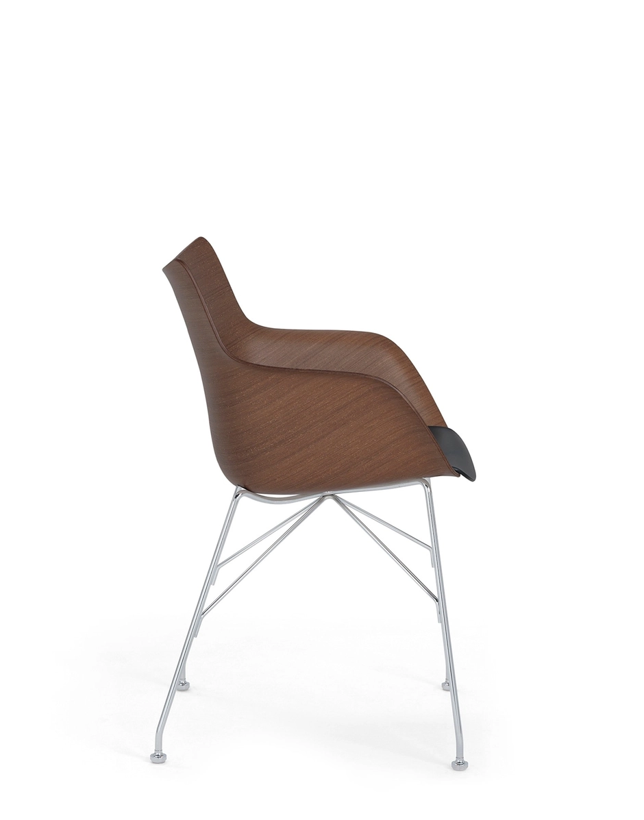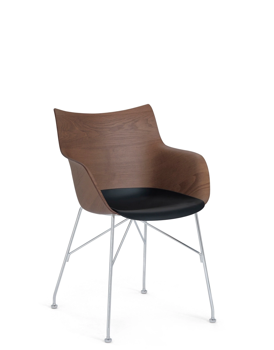 Q/Wood is the armchair from the Smart Wood collection, with enveloping lines that create soft armrests and offer maximum seating comfort. Using patented technology, the wood is worked with a mould designed to bring the curvature of the panel to the very edges, creating a seat with sinuous roundness.