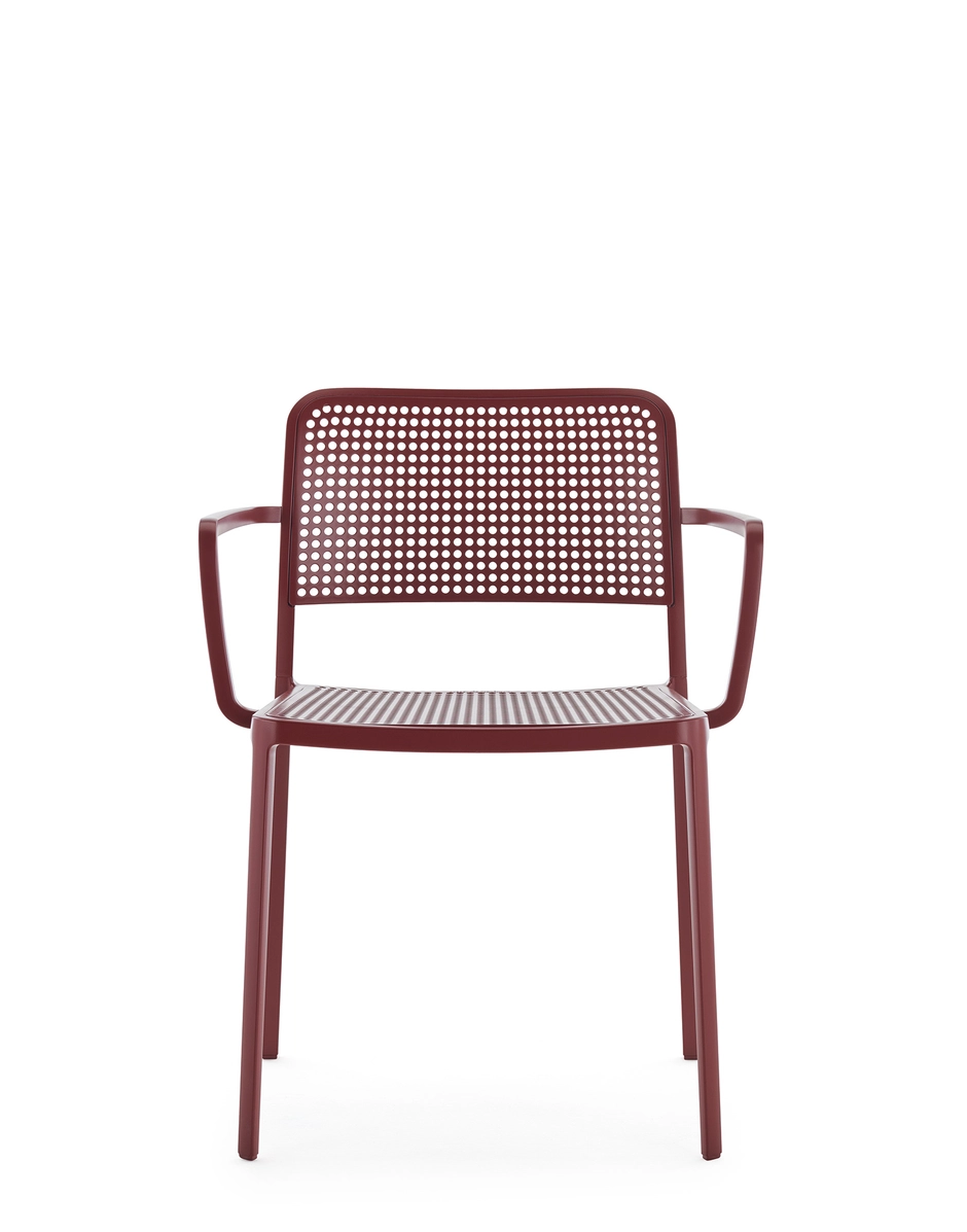Audrey es una silla versátil y contemporánea que, gracias a la línea simple y limpia resultado de un proceso particular de presofusión en solo dos piezas, sin utilizar soldaduras, se convierte en multifuncional y se adapta a todos los usos (interior, exterior, casa, oficina y contrato) gracias a la riquísima gama de combinaciones duras y blandas. Audrey, disponible en versión silla y butaca (con brazos).