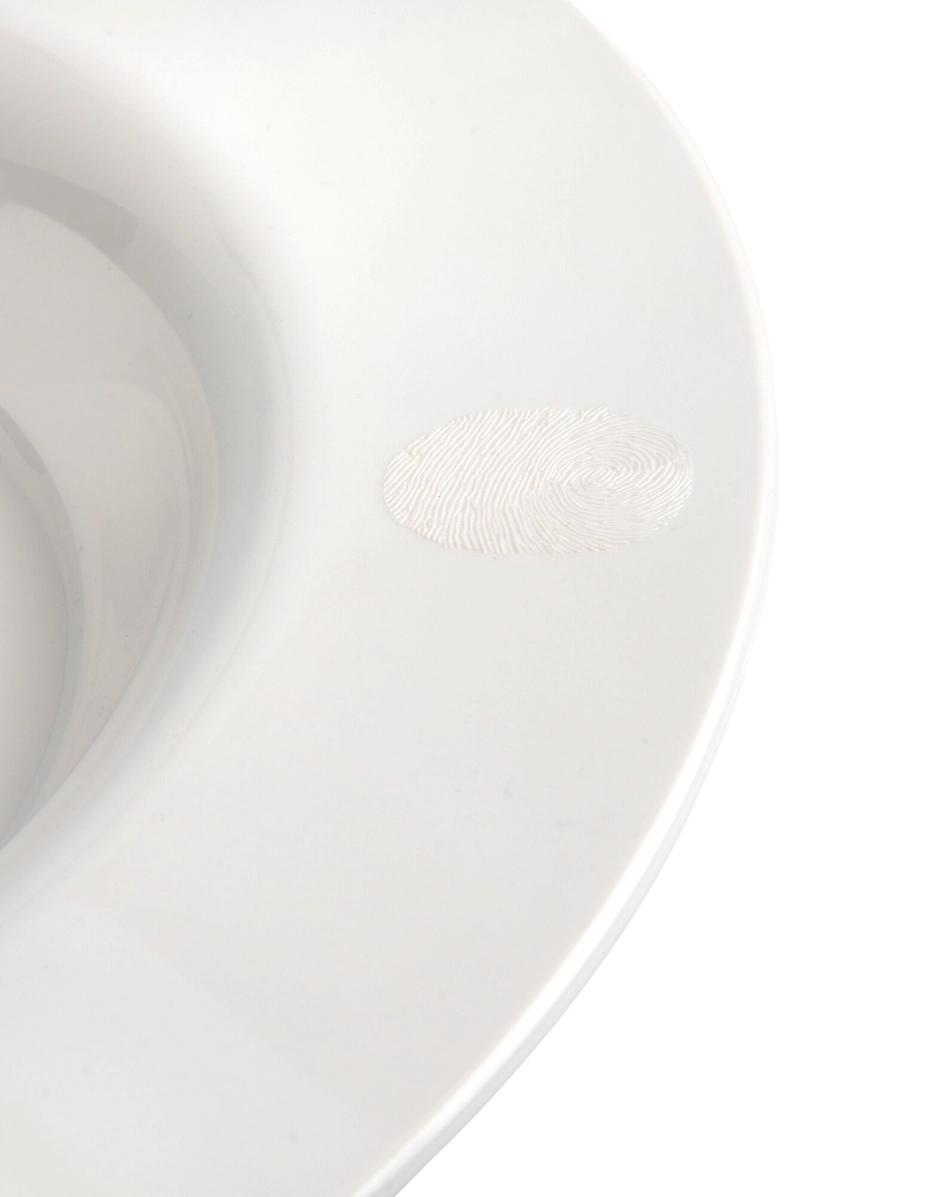 A defining feature of this collection is the embossed stamp on the edge of the plate, reflecting the chef's particular vision of cuisine,in which everything revolves around the act of serving food. It is light yet distinctive to combine practicality with an imaginative and unique style. This collection of plates comes in four models, each referencing one of the four seasons.