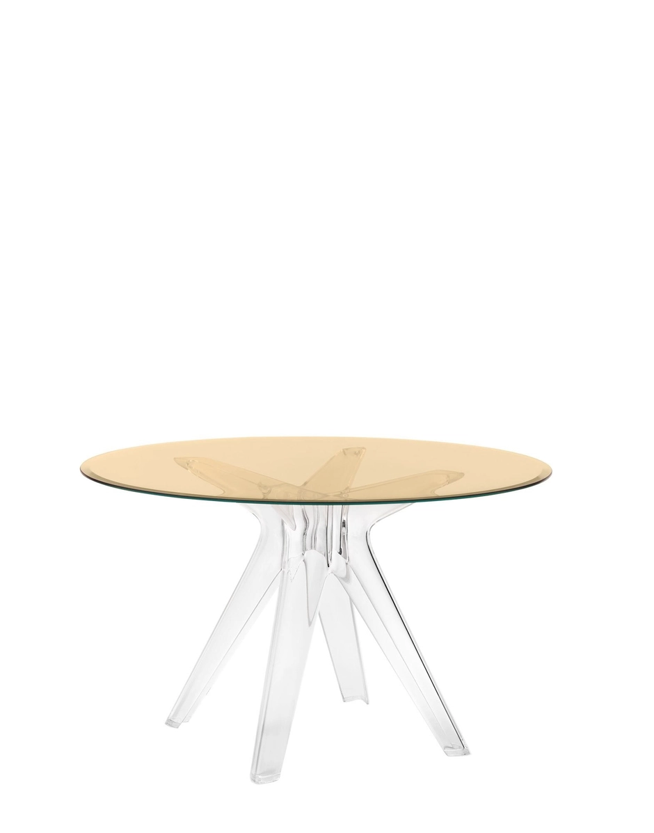 The Sir Gio table is characterised by a central leg created using a high-tech mould: the moulded plastic material conveys high performance and stability to support the glass top. The table offers the chance to combine different coloured bases and tops, for a wide range of different solutions.