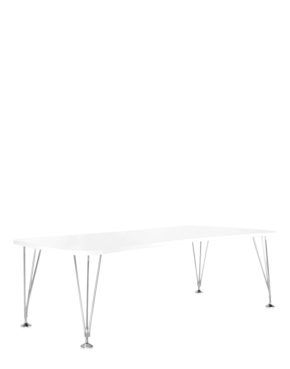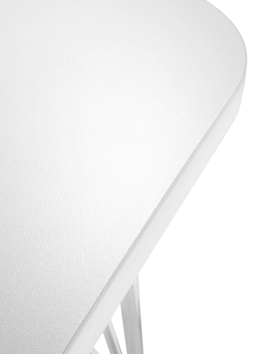 This study table was born for the office. The gentle, hourglass shape allows Max to sit side-by-side with tables of the same type as well as with other office furnishings. It can stand alone as a single workstation or together with companion pieces, creating work islands for open office spaces. The match-up combinations are easy and quick, thanks to its lightness and mobility, as demonstrated by the leg structures. Three metal tubes in chromed steel join at the base to form castors or feet. The castors are also equipped with auto-lock brakes for stability.