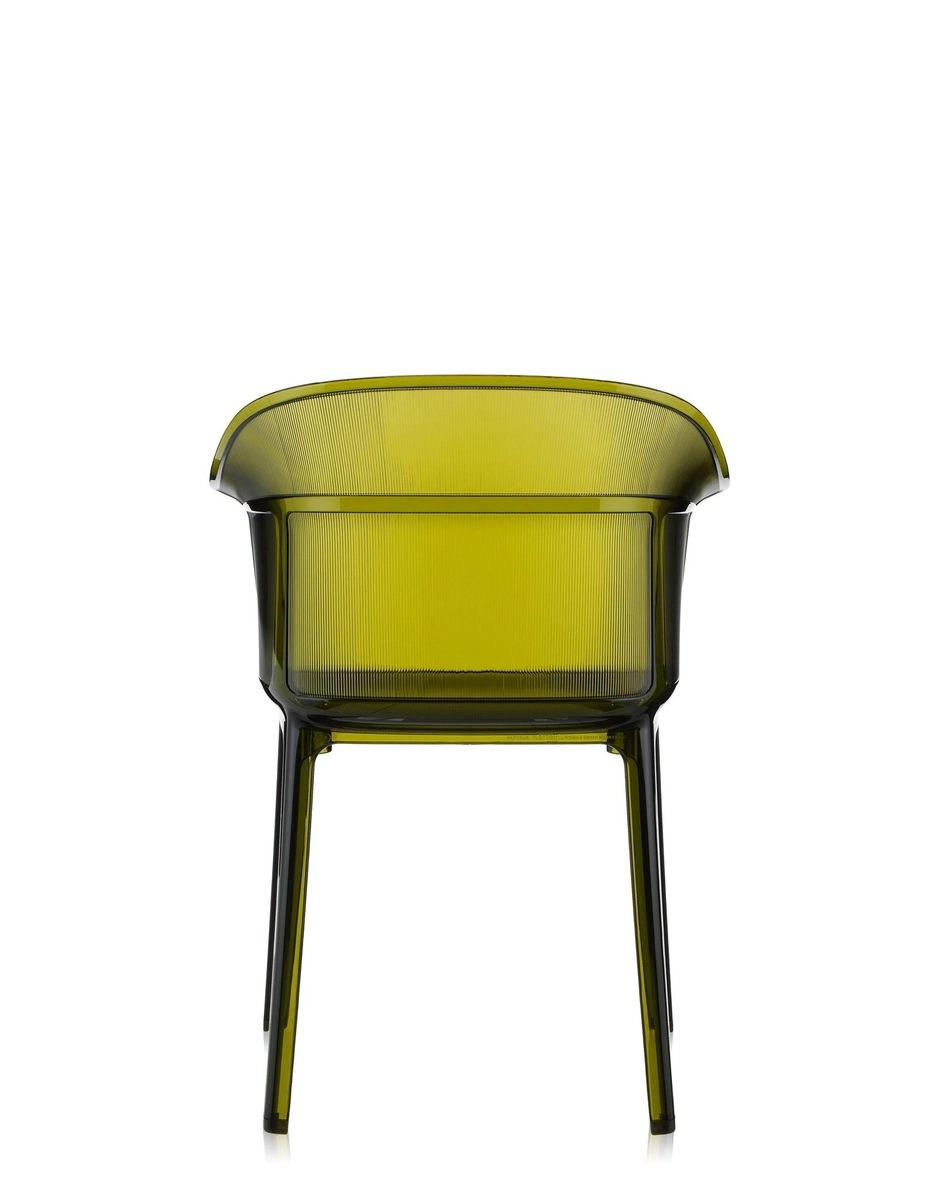 Papyrus is a remake of the archetypal antique rush chair, from a time when chair structures were decisive and strong. This chair combines a translucent support with a slender vertical pebbling, running along the entire outside of the rounded backrest, with its soft and snug lines.