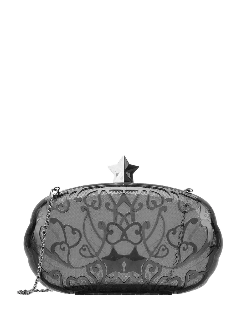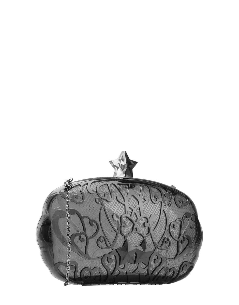 Rosas-clutchen fångar blicken tack vare sitt ovanliga öppningssystem med en tredimensionell stjärna och levereras komplett med en axelrem i kedja.