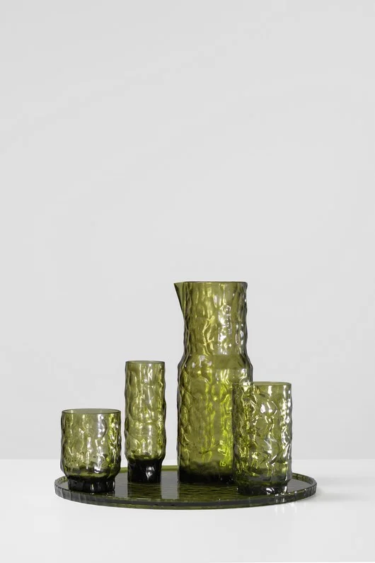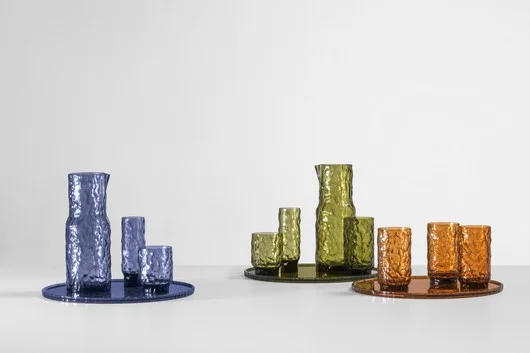 The AALAND collection, designed by Patricia Urquiola, is enriched with a new curved version that amplifies its fluid and welcoming nature. Inspired by the morphology of archipelagos, AALAND now introduces sinuous elements that allow for softer, more enveloping configurations, fostering an even more dynamic and relational dimension of space. This evolution expands design possibilities while keeping the system's flexibility intact: each element can be freely reconfigured, creating domestic landscapes in constant transformation. The LEPID collection is born as a balance between sign and matter, between design rigor and expressive freedom. The system—comprising bookcases, shelves, sideboards, and consoles—turns the profile into the true protagonist of the project, making it the graphic element that traverses and defines the entire composition. Precisely calibrated lines that meet and overlap, along with balanced solids and voids, build a light rhythm in the space, while the contrasting edge becomes a continuous mark that evokes the spontaneity of a hand-drawn stroke. Made with recycled wood fiber panels painted in ivory, burgundy, and mustard, it allows for sharp contrasts between surfaces and profiles, transforming a constructive detail into a distinctive feature. The wood comes from FSC-certified forests, while the interlocking rail assembly system ensures structural solidity and ease of mounting. Kartell’s tableware line is enriched with a new collection by Patricia Urquiola that stems from a precise, almost artisanal gesture, reinterpreted through technology and material research. CESEL takes its name from cesellatura (chiseling), a decorative technique that works the surface with light, rhythmic incisions, transforming matter into a narrative of light and detail. From this inspiration comes a complete service—including glasses (water, wine, cocktail, flute), a carafe, and a tray—made of transparent recycled material suitable for food contact, where the surface is never neutral but vibrant, dynamic, and alive. The result is a subtle balance between industry and craftsmanship, between technical precision and controlled imperfection. Each glass becomes a small architectural object, designed to dialogue with the table and the space. The chiseled surfaces create a play of reflections that change according to the light and the content, making every use unique. The new rug collection designed by Patricia Urquiola is born from a free, immediate, and almost instinctive gesture: the brushstroke. PINCEL, from the Spanish word for brush, translates a fluid and continuous mark onto the textile surface, as if drawn by hand. The lines traverse the rug naturally—never rigid, never perfectly defined, but alive, light, and capable of suggesting movement and depth. The rug thus becomes a pictorial surface where color is distributed dynamically and organically, creating visual vibrations that change according to light and perspective. It is not a decorative pattern in the traditional sense, but a mark that tells of a gesture: direct, spontaneous, and expressive. Available in various sizes, PINCEL adapts naturally to different contexts, always maintaining the strength of the stroke and its ability to define the space.