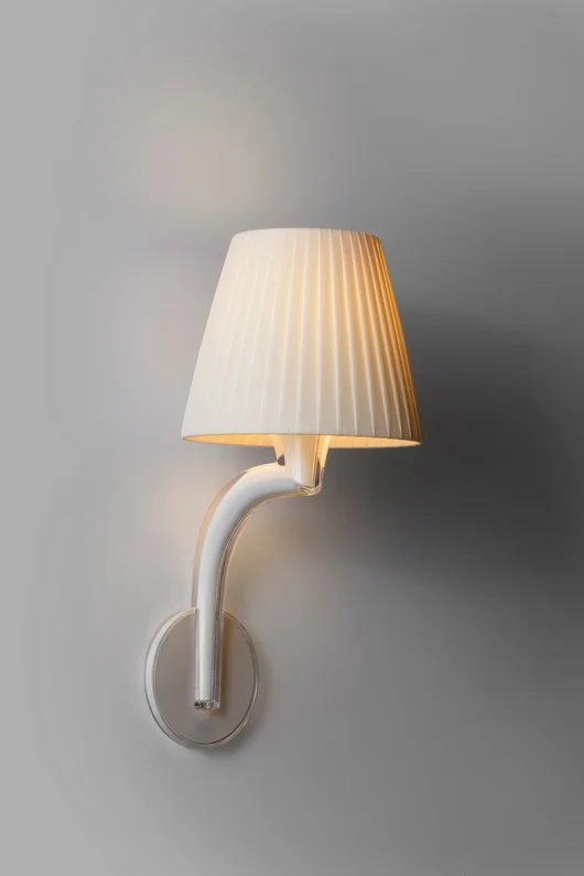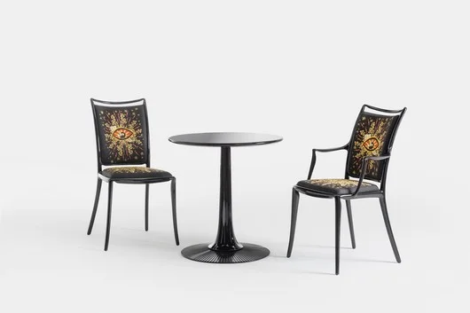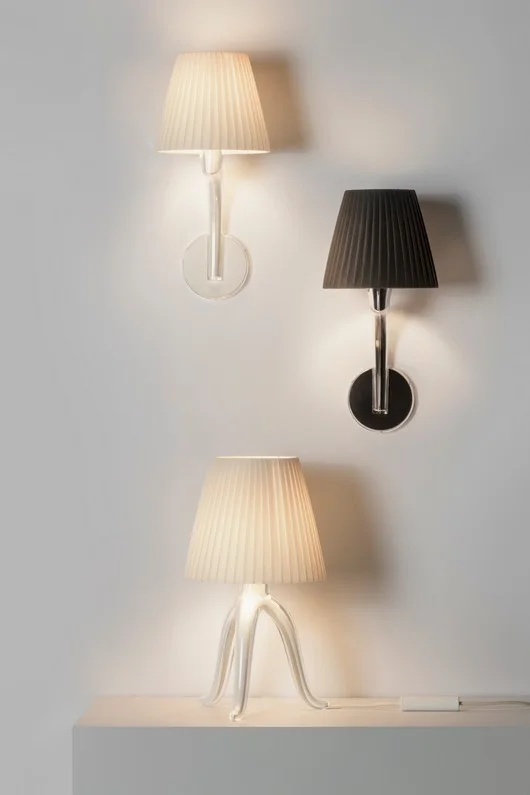 The GIO seating—chair and armchair—designed by Philippe Starck, reinterprets the elegance of Italian tradition through a contemporary lens. The slender, rigorous structure traces a light profile, while the seat and backrest introduce a richer, decorative, almost textile-like dimension. It is precisely in this contrast—between essential form and surface intensity—that the project finds its balance. The proportions are familiar and reassuring, yet never predictable: every element is calibrated to deliver comfort and presence, with an attitude that evokes the world of classic furniture reinterpreted with freedom. GIO brings a discreet yet recognizable elegance to a space, capable of engaging with different contexts while always maintaining a strong identity. The GIOLI lamps, available as table and wall versions by Philippe Starck, reinterpret lighting as an essential and defining presence in space. The project combines a recognizable, almost archetypal shape with a craftsmanship that introduces texture and depth, transforming the surface into an active element. Light does not merely diffuse; it interacts with the design, creating reflections and variations that enrich the atmosphere. Compact yet expressive, the two versions dialogue with one another, allowing for diverse yet coherent applications: from intimate, focused light to more diffused ambient lighting. GIOLI is a project balanced between memory and modernity, where formal simplicity meets a strong visual identity. The GIOTA table, by Philippe Starck, continues the collection's narrative through an essential and recognizable sign. The slender and precise central base supports the top naturally, creating a balance between stability and visual lightness. The proportions are carefully calibrated, resulting in an object that fits into a space with discretion yet character. GIOTA evokes an idea of reinterpreted classicism: a familiar presence reread through a contemporary and rigorous language. The result is a table capable of adapting to different contexts while maintaining a strong formal identity. A project that synthesizes elegance, functionality, and proportion, becoming a meeting point and the focal point of a room. With AURORA BELLA, Philippe Starck imagines a lamp that seems suspended in space, diffusing soft and uniform lighting capable of accompanying the environment with discretion. The project plays on visual perception: the lamp appears as a luminous sign floating in the air, transforming light into an atmospheric element rather than a simple light source. The result is an essential and refined object, capable of bringing a sense of lightness and contemporaneity to interiors.