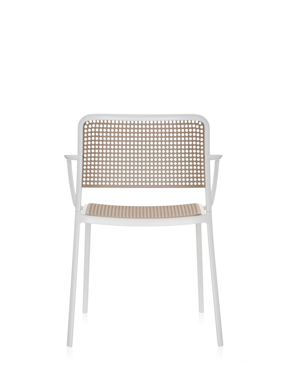 Audrey is a versatile and contemporary chair which because of its simple, clean lines obtained through a special die-casting process is composed of only two parts and made without welding. It is multifunctional and adaptable to all uses - indoor, outdoor, the home, office and contract - with its wonderfully rich range of combinations both hard and soft. Audrey comes in either the chair or the armchair (with arms) version.