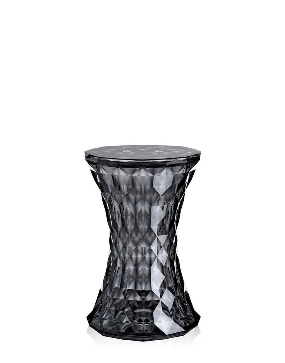 Stone is a stool with a shape which is reminiscent of an hourglass, its surface is simply extraordinary: it is irregular and comprised of a myriad of geometrical facets which reflect the light and create a striking and unique play of colours, much like a diamond.