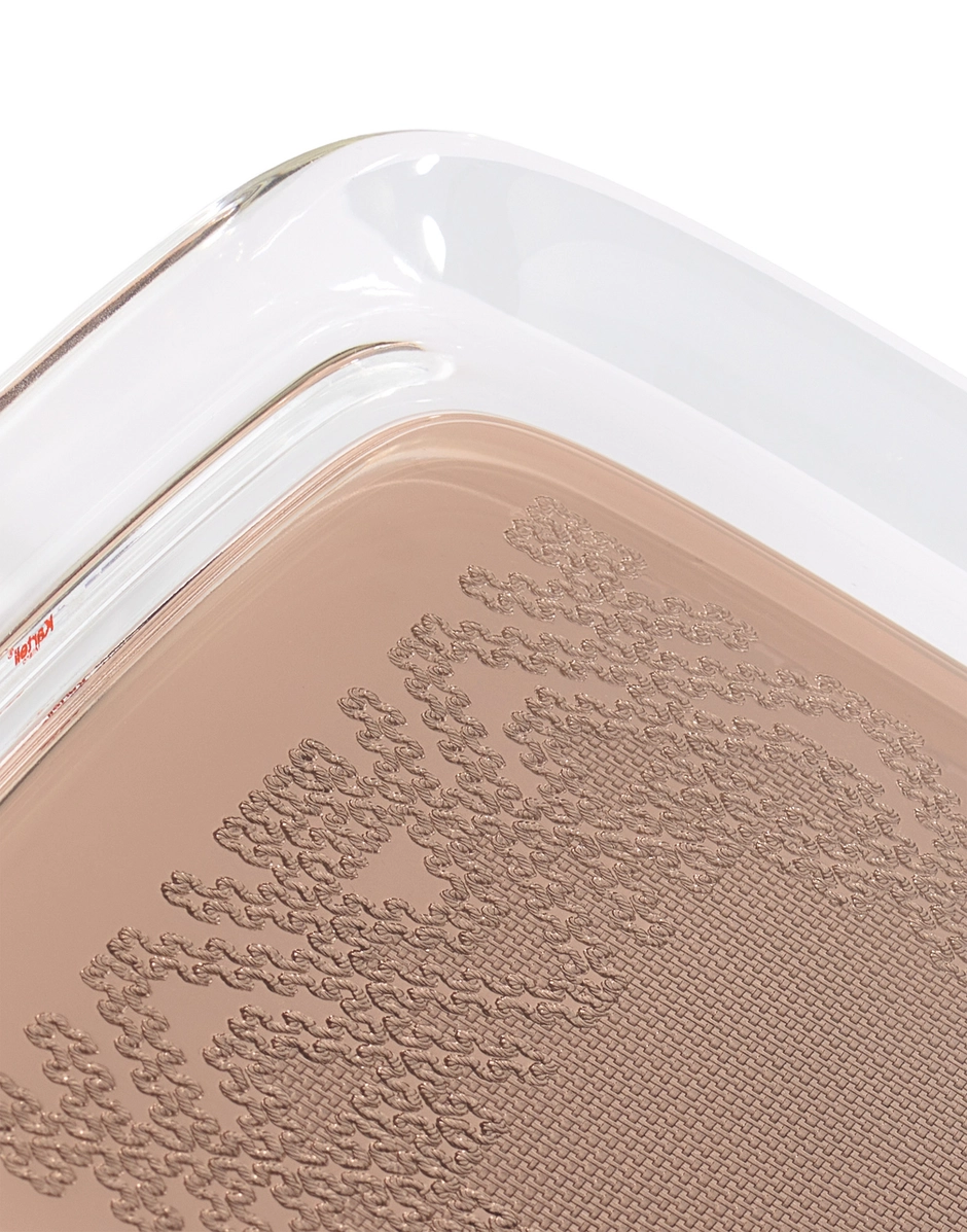 Precious embroidery, reminiscent of the past but becoming a discreet and familiar design object, like family tea time. TEATIME is Philippe Starck's new tray, which plays with references to crocheted openwork applied to the new high-tech sustainable material. Available in gold, bronze, chrome and pink.
